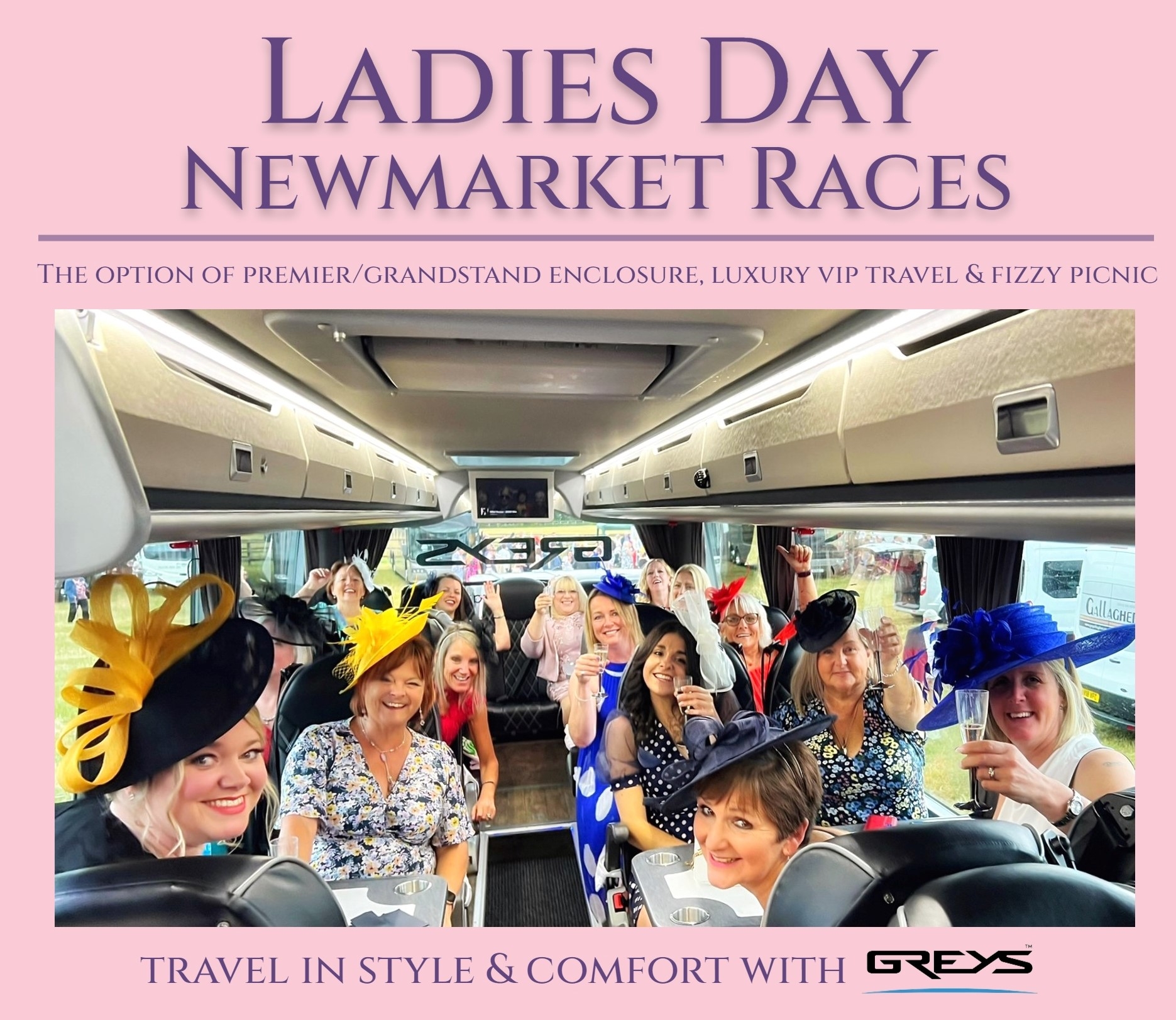 This year, we are giving guests the option to purchase tickets for EITHER the Grandstand & Paddock Enclosure or the Premier Enclosure, which both still include your luxury travel and fizzy picnic. Our ticket prices are as follows: