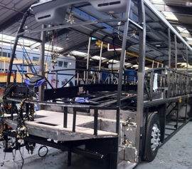 Taking time away from the office, just after Christmas, we traveled up to Plaxton's main manufacturing plant at Scarborough. We met with Mark Ballam, New Coach build manager, who took us on a tour of the factory showing us the build process from chassis through to completed Coach. The striking new design of the Panther 2 is obvious even when the vehicle only has the bare metal framework. Our new coach will be finished in late April and we will let you know all about it once it arrives.