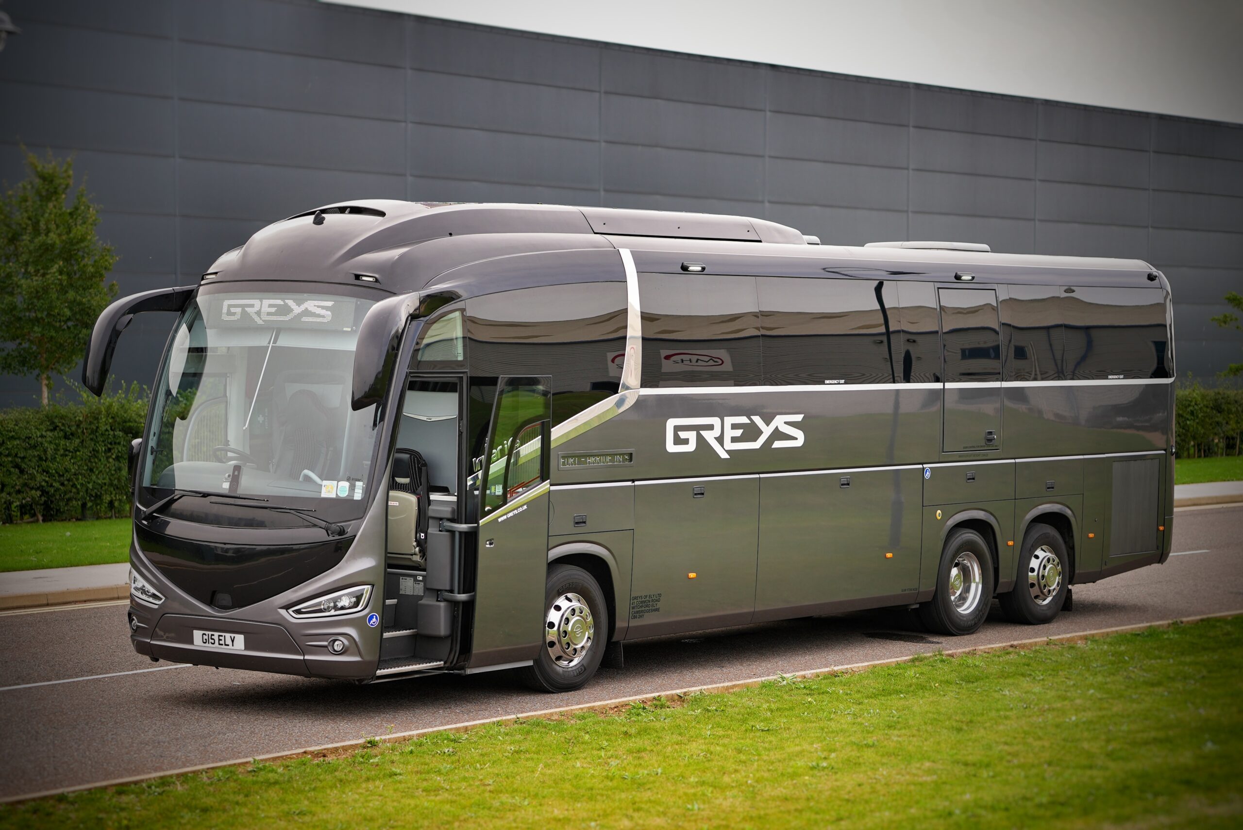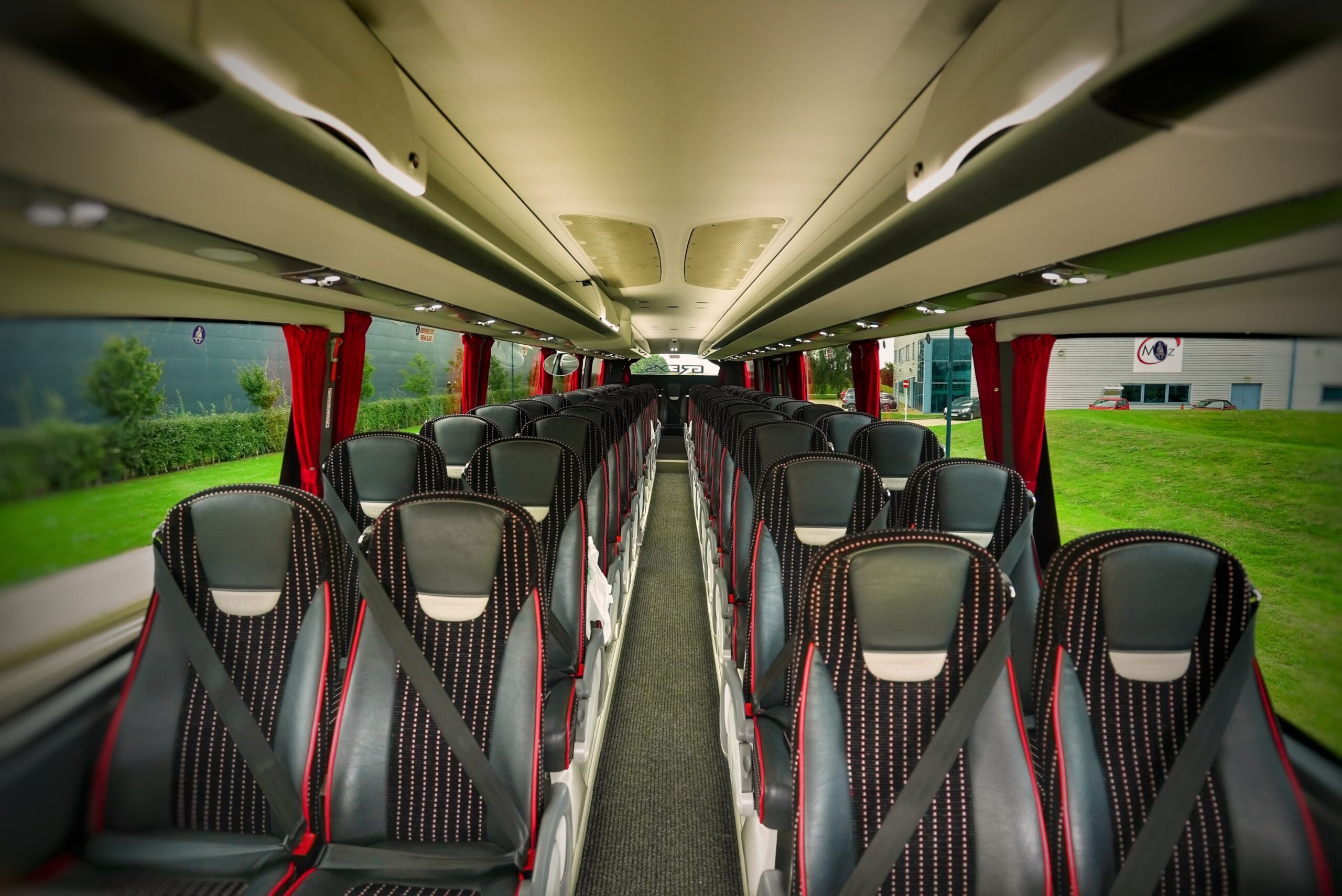 Our 13 metre tri-axle coach allows for 59 leather piped seats each with sumptuous leg room, both centre and side arm rest, panoramic front glass roof. In addiotion this vehicle also offers full wheelchair access through the curbside loading lift. The coach can take a maximum of 4 wheelchairs. [Please advise on the number of spaces required at the point of enquiry, so that the coach can be correcly confirgured]. This extravagant looking coach will meet and exceed you or your clients expectations. This vehicle has the latest Euro VI engine, which helps us reduce our emissions and Carbon Footprint.